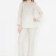Step into feminine charm with the Lush Co-ord Set, featuring smocked detailing and red floral embroidery on a blush pink Chanderi fabric. The scalloped hemline and coordinated pants create a sophisticated yet playful look for festive luncheons or cultural events.